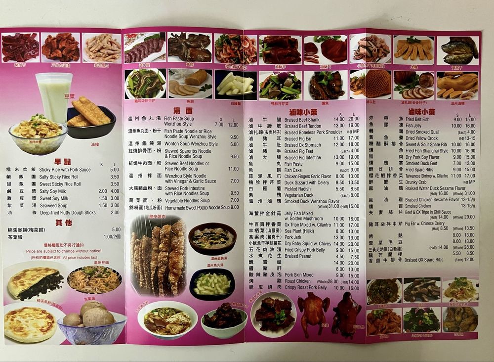 Introducing the menu at Golden Corner Noodles, a Chinese restaurant in Flushing, NY, known for its Wenzhou-style dishes. The menu offers a variety of noodle soups like Wenzhou Fish Paste Soup, Wonton Soup, and Stewed Beef Noodle Soup. Their braised dishes include options like Braised Beef Shank and Braised Pig Ear. Customers rave about the flavorful broth, tender meat, and unique offerings like the homemade sweet potato noodle soup and crispy pork belly. The restaurant's small, unassuming exterior belies the delicious and authentic Wenzhou cuisine served inside. With friendly service and affordable prices, Golden Corner Noodles is a hidden gem for those seeking a taste of traditional Chinese flavors with a twist.